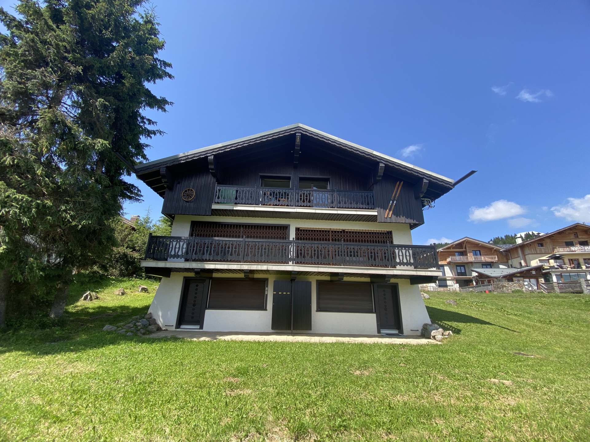Chalet au milieu des pistes, sous l'école de ski ESF. En hiver, accès piétons sur 100m à travers les pistes. Parking stationnement véhicule à 200m. Commerces 300m.