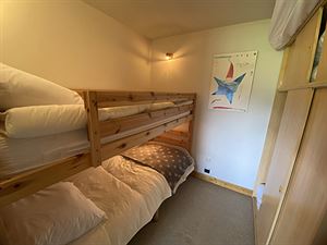 - cabine sans fenêtre fermée avec rideaux: 2 lits superposés (sommier inférieur à lattes extensibles pour couchage double)