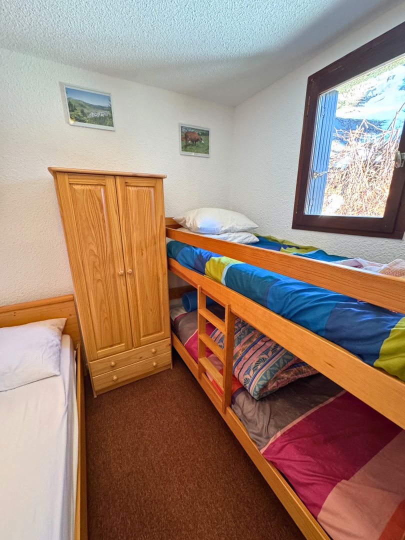 - Une grande chambre avec fenêtre lit double et lits superposés